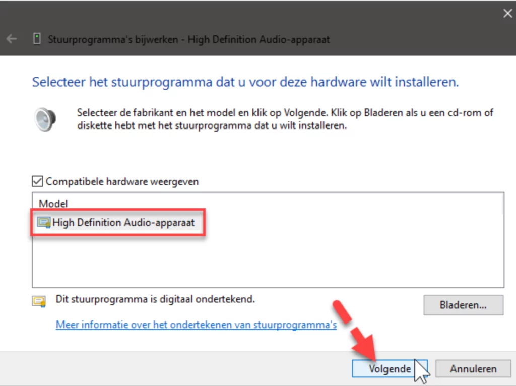 - Ik wil kiezen uit een lijst met stuurprogramma’s op mijn computer
